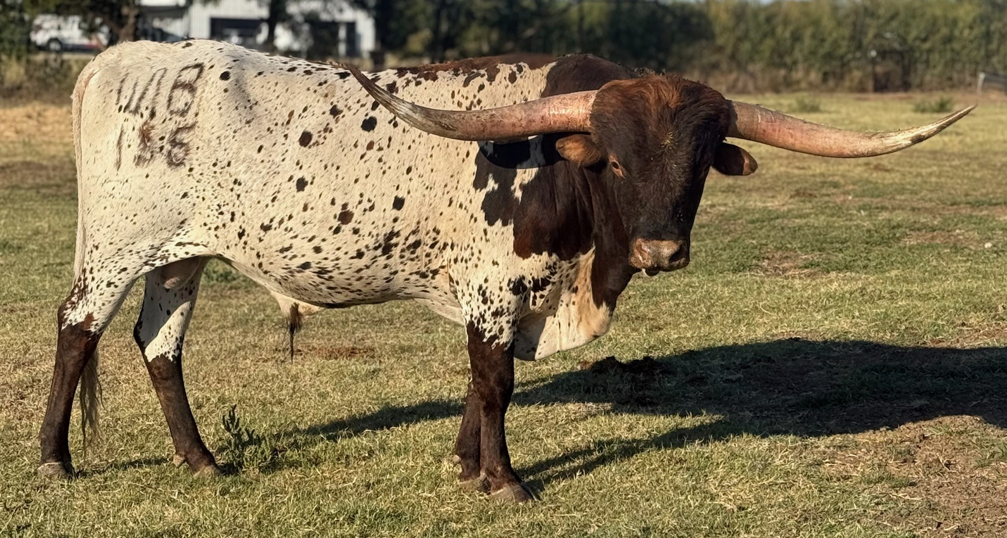 Major Rifleman is a solid bull with some of the most sought-after genetics, starting with being the son of M2 Rifleman, grandson of Concealed Weapon, and then linked to Hubbell's 20 Gauge. He is a gentle giant with a phenomenal disposition. He has the brindle, the color and his horns are coming on strong.