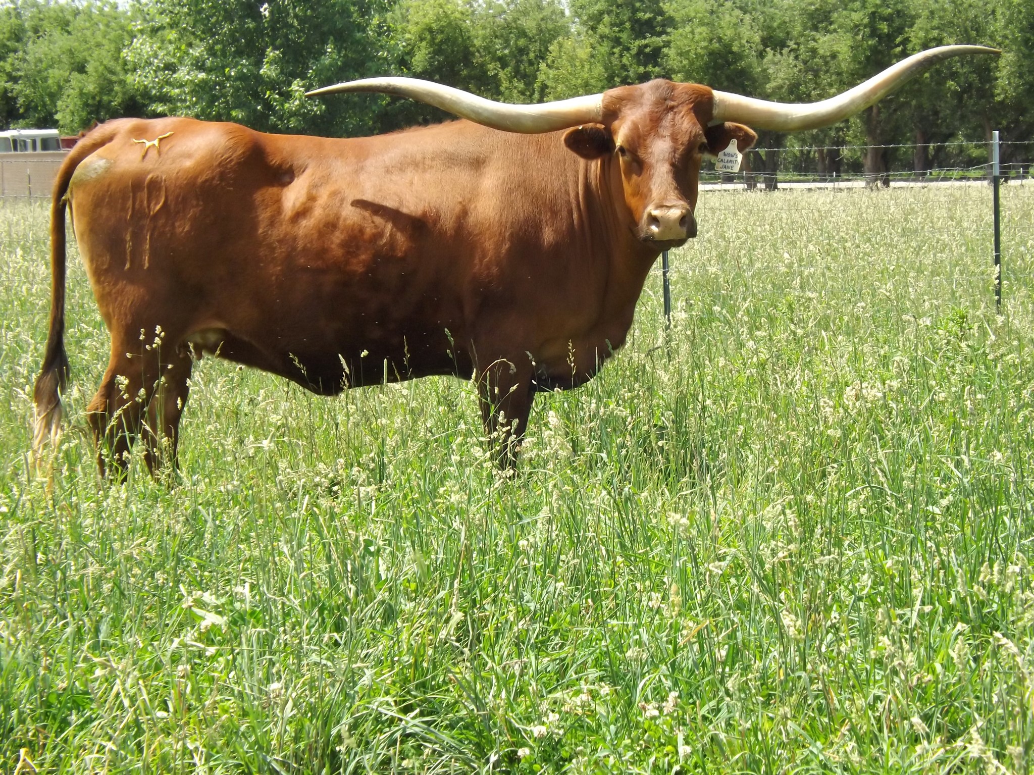 Gorgeous young cow with tons of twisty, flat horns. A real winner, the ideal longhorn horn set on this girl.